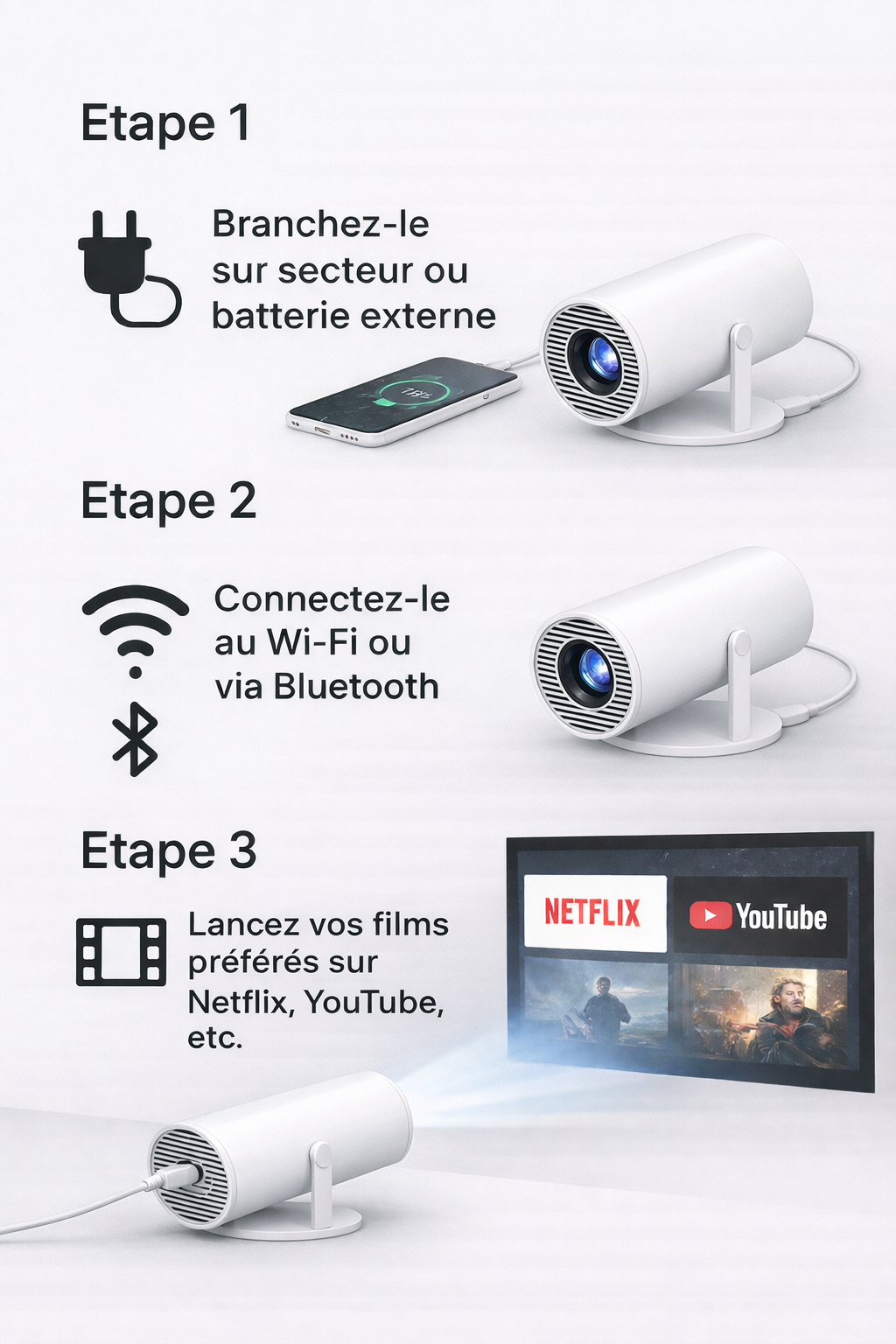 Super produit ! L'installation était rapide et la qualité de l'image en 4K est époustouflante. Parfait pour les soirées entre amis."
